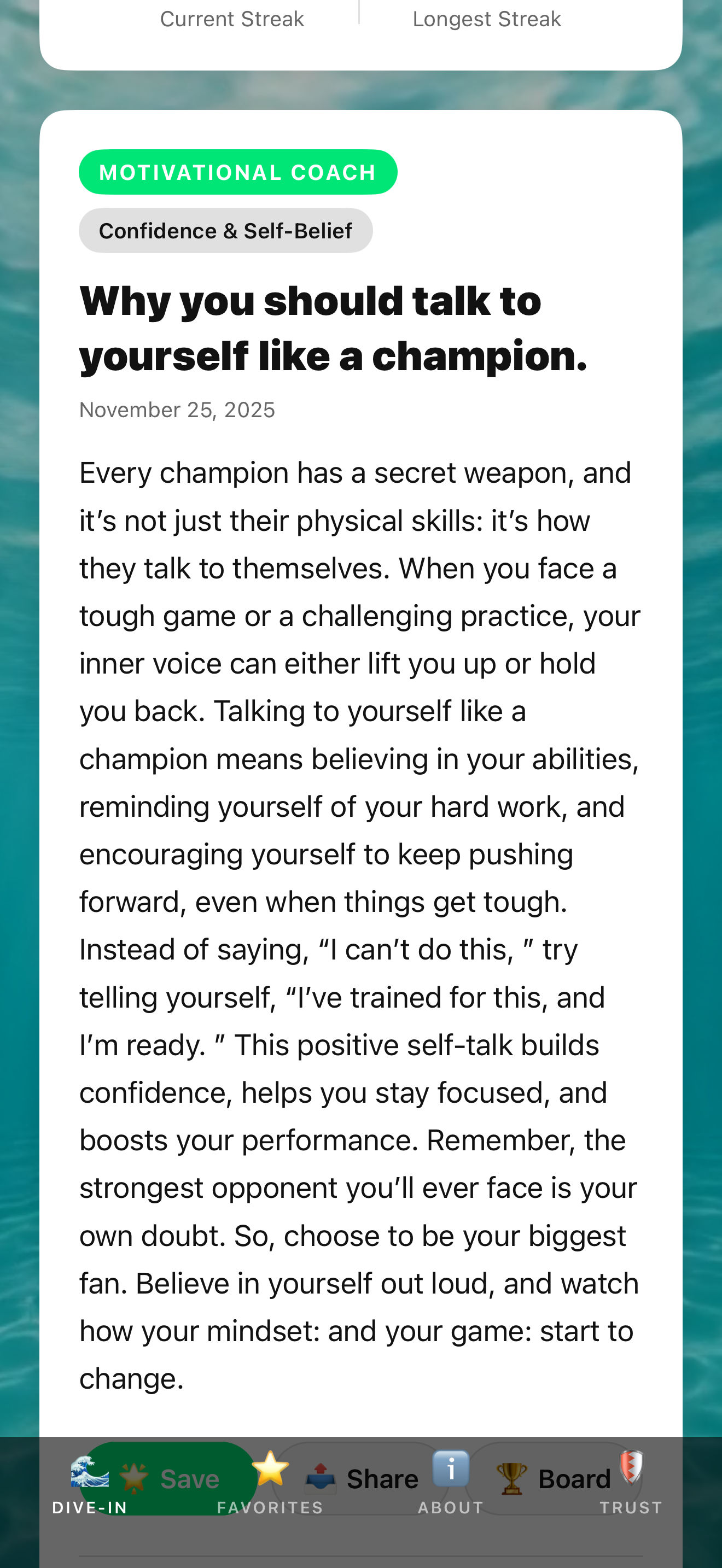 Each day, receive a new motivational message designed to sharpen your mental game.